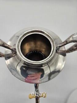 Made from quadruple plate silver. Heavy solid piece stands 11" tall and 10" wide handle to handle.