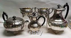 The product is an antique silver teaset made by Victoria Plat EPNS. It includes one teapot, two coffee pots, and a set of sugar and creamer.