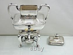 ABOUT 3.9 LB (1770 GRAMS) - HEAVY FOR THE SIZE. VERY GOOD ORIGINAL ANTIQUE CONDITION WITH MINOR CHARMING INDICATION OF AGE. MINOR EXPECTED AGE WEAR TO SILVER PLATING. FAUCET IS FULLY FUNCTIONAL, HOLDS.AGE PATINA AND NORMAL STABLE AGE CRACKS TO SMALL B0NE KNOBS. COUPLE OF VERY MINOR DENTS TO LID AND BURNER. BURNER IS MISSING IT'S SMALL LID, STILL FULLY FUNCTIONAL.