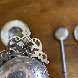 This is a mini collection of tea strainers. One needs a small pin replacement, otherwise all are in good used condition.